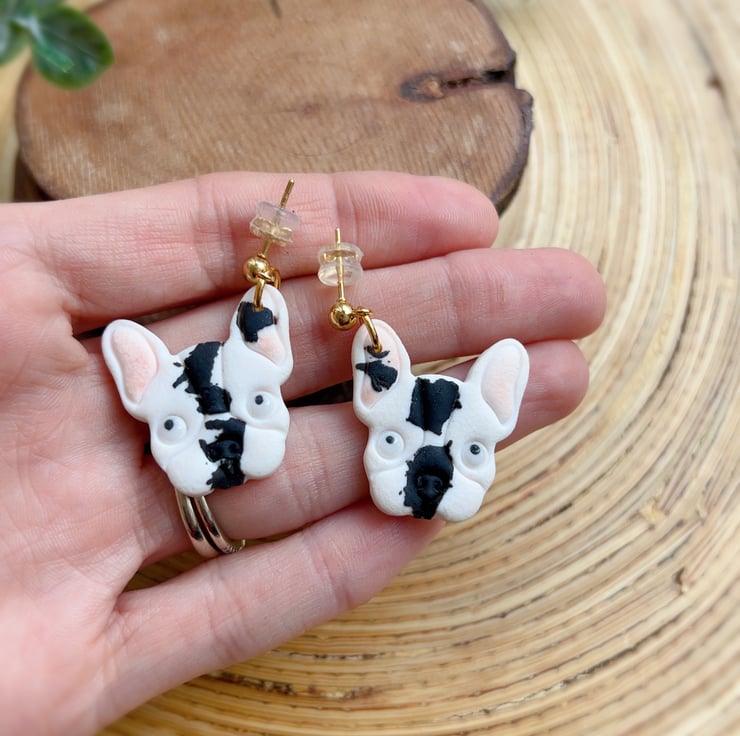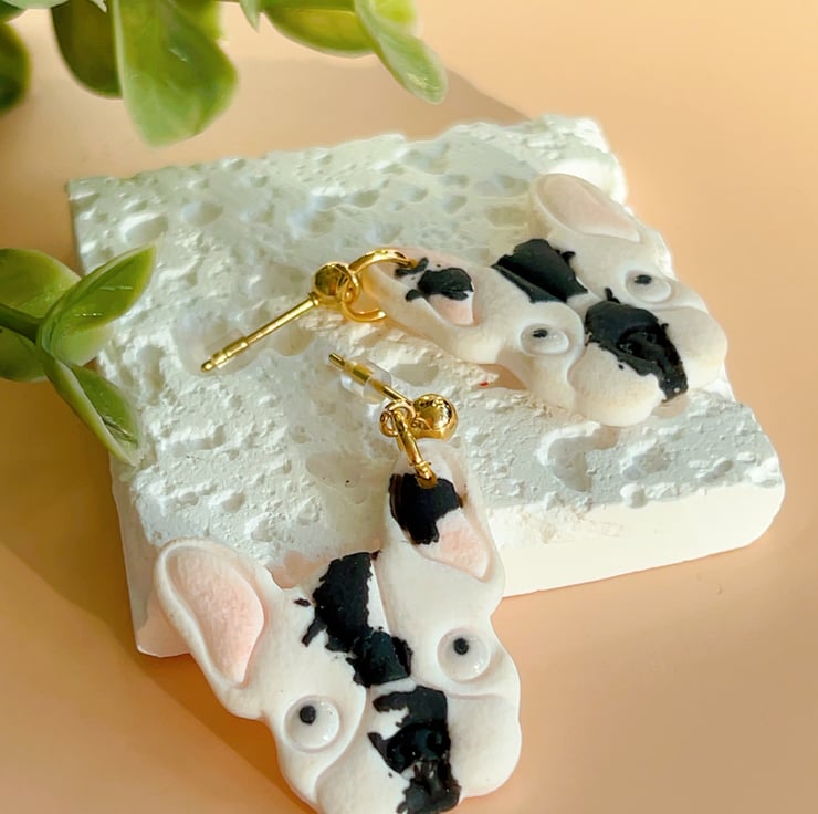 French bulldog earrings, Handmade dog face jewellery for dog lover