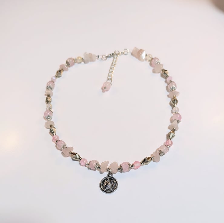 Rose Quartz for love, calm and a little every day magic. Finished with a delicate charm.16 Inch.