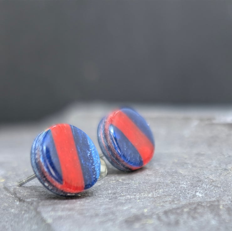These stud earrings add a dash of colour to your wardrobe, they feature the use of blended translucent and opaque clay, adding depth.