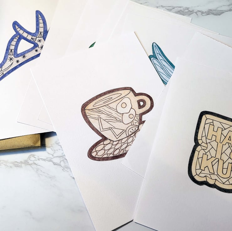 The illustration is originally hand drawn/coloured and then manually developed further using image manipulation software. Poem 'Morning' is featured in my Haiku Volume 1 Handmade Poetry Book (listed separately) and all purchased items come with a free bookmark, see images in listing details for more information on these pieces.