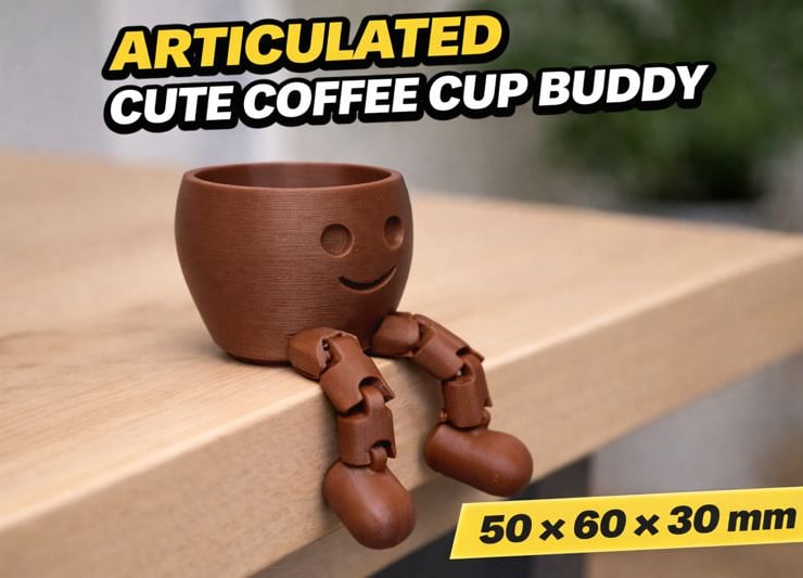 Add a bit of character to your desk, shelf, or coffee station with this Articulated Cute Coffee Cup Buddy. Designed as a playful little cup with a smiling face and fully articulated legs, this unique piece is perfect as décor, a gift, or a fun display companion.