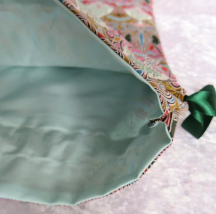 A lined drawstring bag, made from Liberty Tana Lawn.