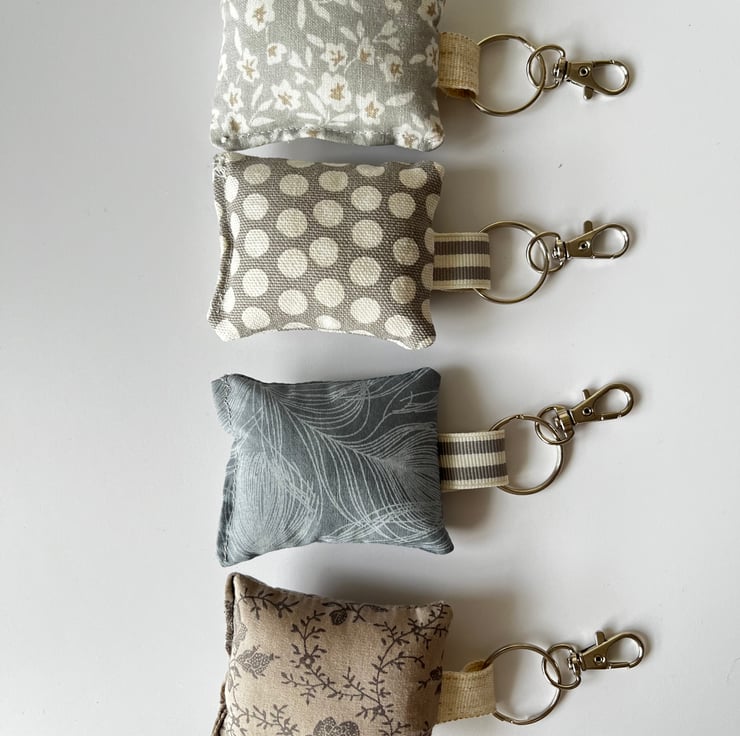 Handmade fabric key chains made with high quality fabric, stuffed with a soft filling and zinc metal clasp.