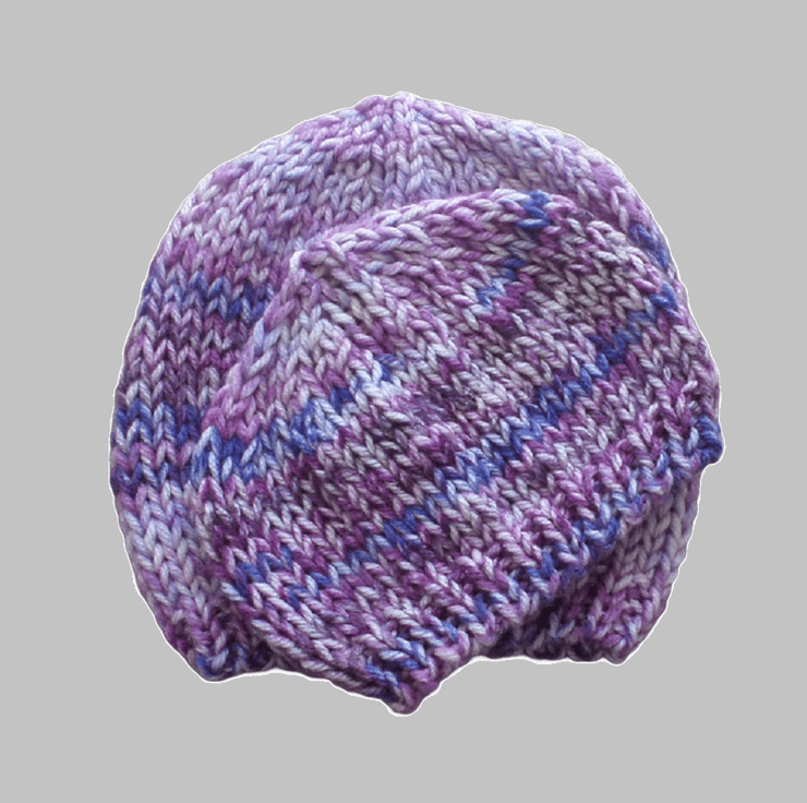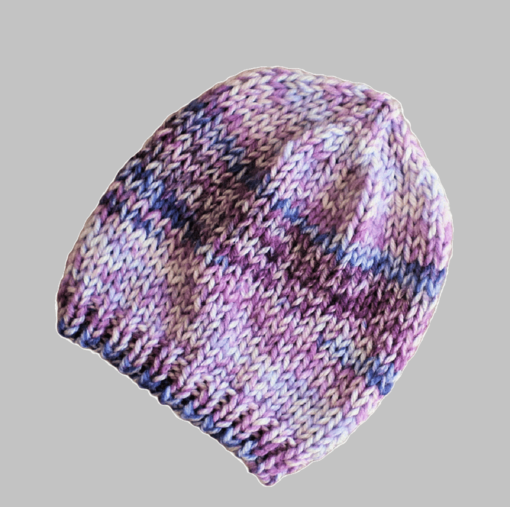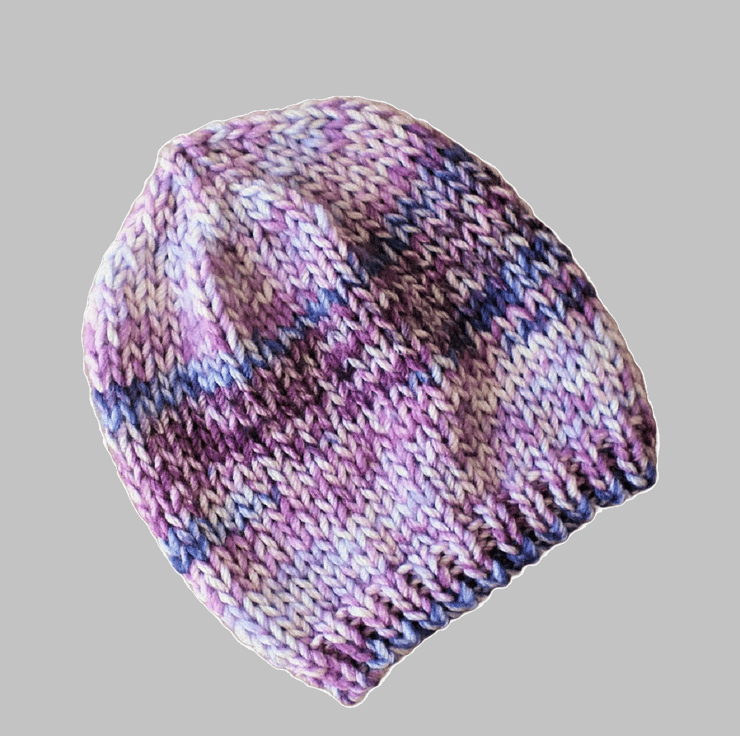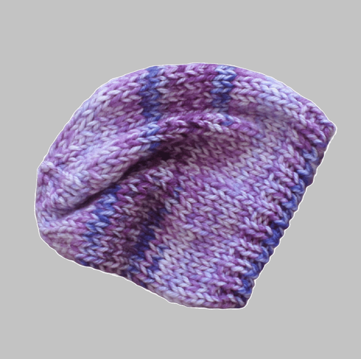 To fit: child (adult). Length: 28 (30) cm or 11 (11.75) inches. Circumference: 48 (52) cm or 19 (20.5) inches. It is knitted in super chunky yarn using 10 mm and 12 mm knitting needles. It is knit flat and seamed.