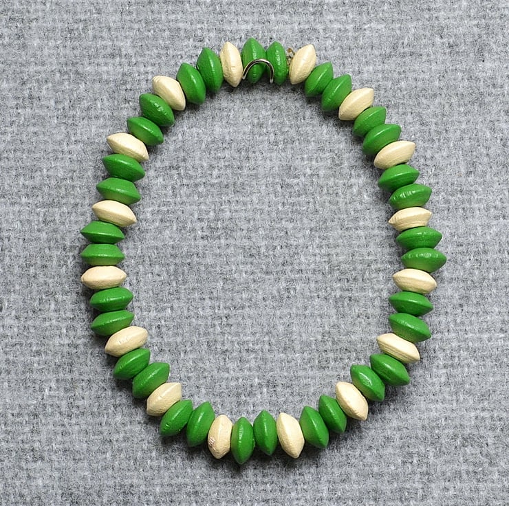 Green and Cream Wooden Rondelle Elastic Bracelet
