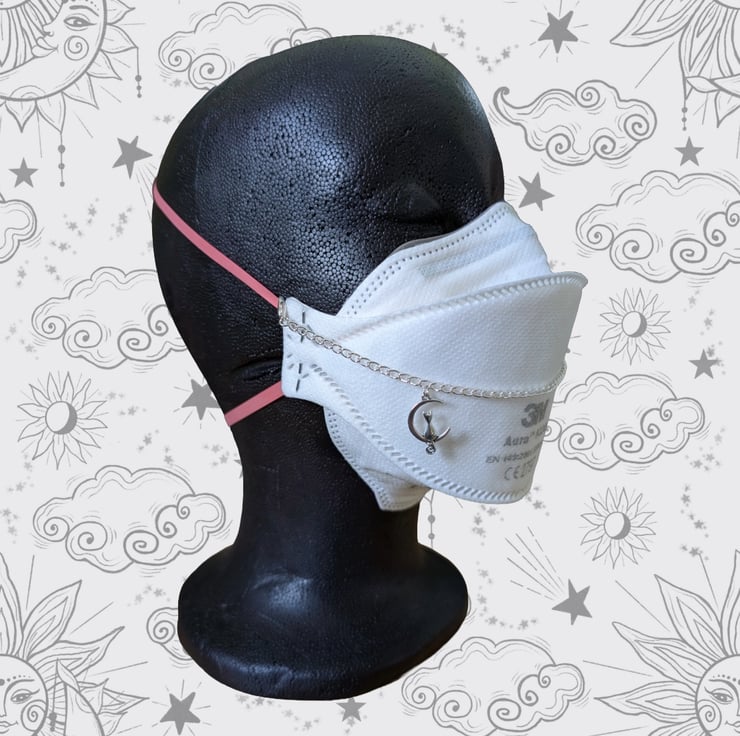 Please be aware that on some masks (e.g. the Aura), the metal lobster clasps will be in direct contact with your skin. If this will cause issues for you, please just send me a message and we can discuss alternative fastenings.