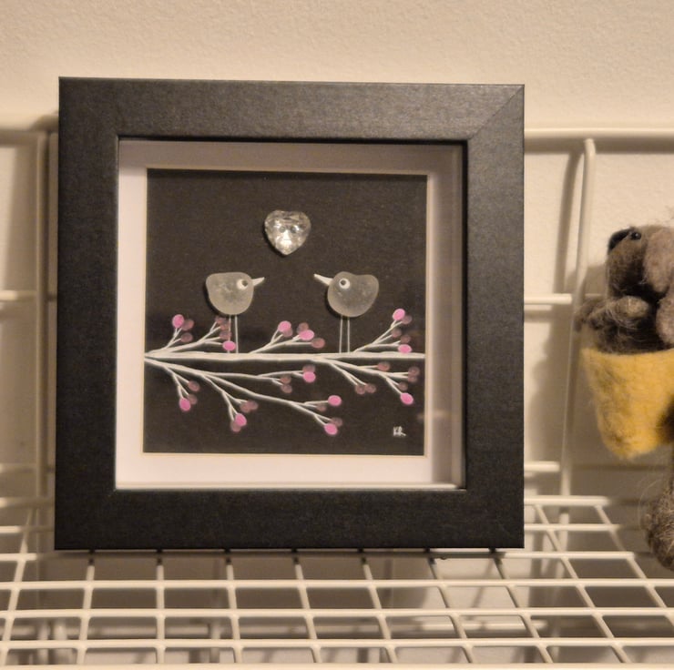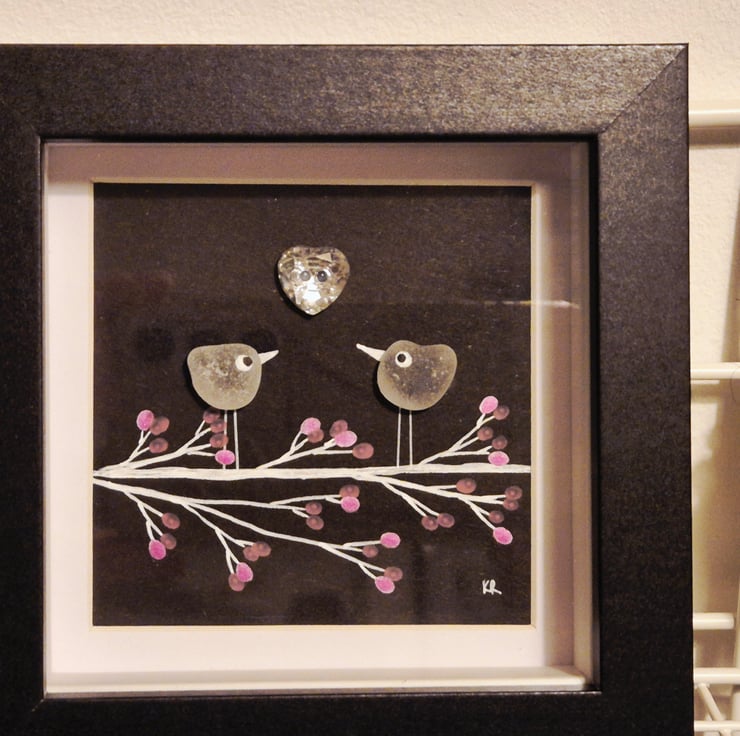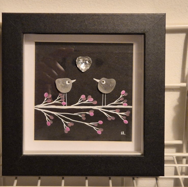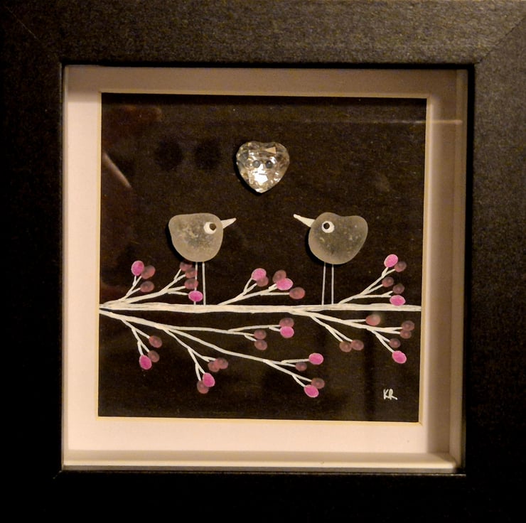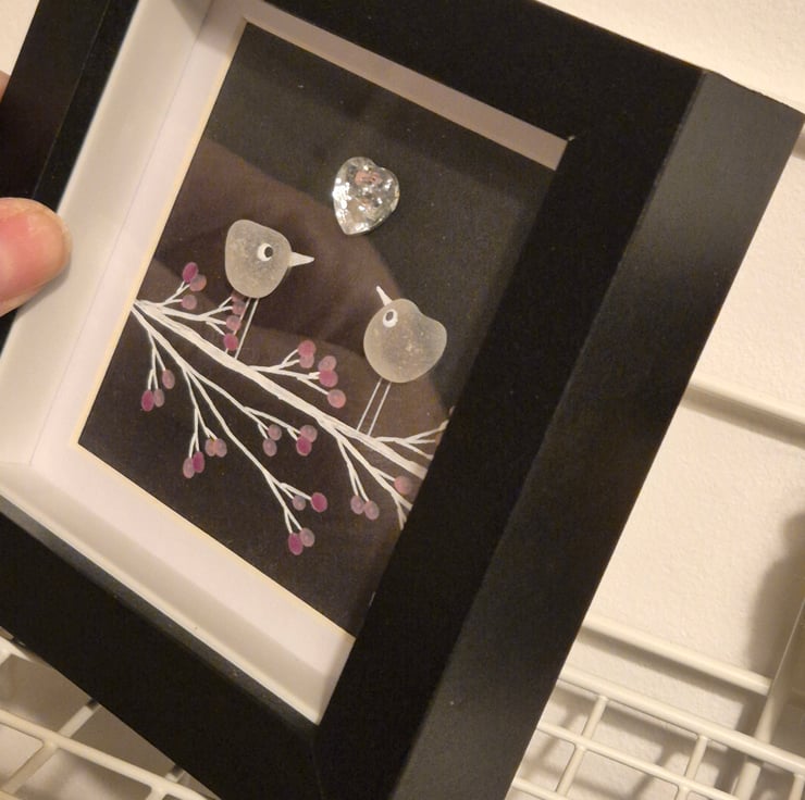 Gorgeous little hand drawn picture made with seaglass from Seaham beach, all hand drawn in ink.