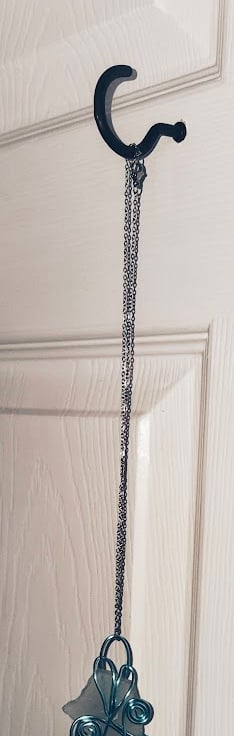 The frosted glass has a soft, matte surface that gently diffuses the light, while the blue wire wrap adds contrast and movement, framing the glass without overpowering its natural shape. Each wrap is formed by hand, following the contours of the glass so every piece is completely unique.