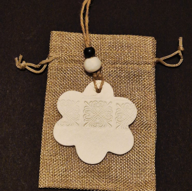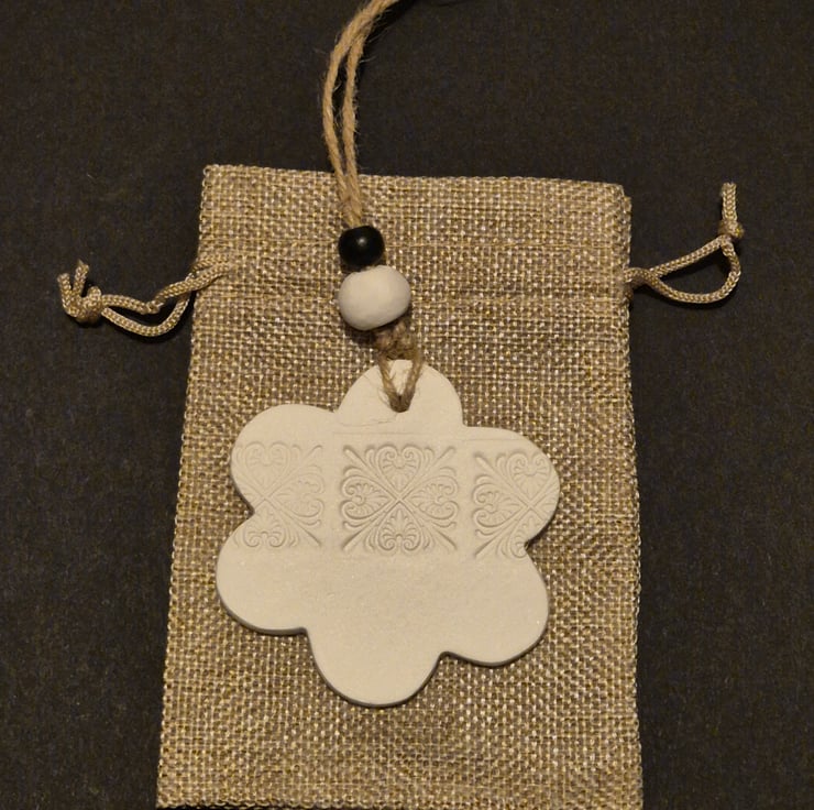 Cute little handmade airdry clay diffuser hanging in gift bag air freshener