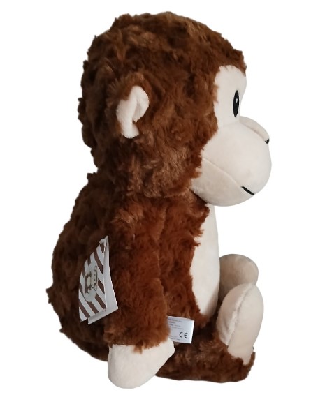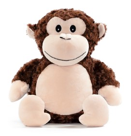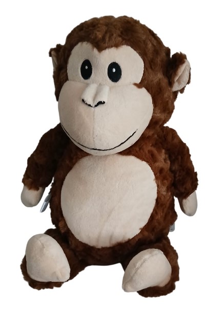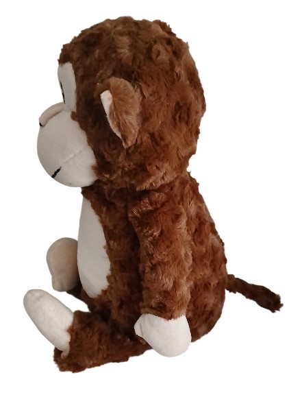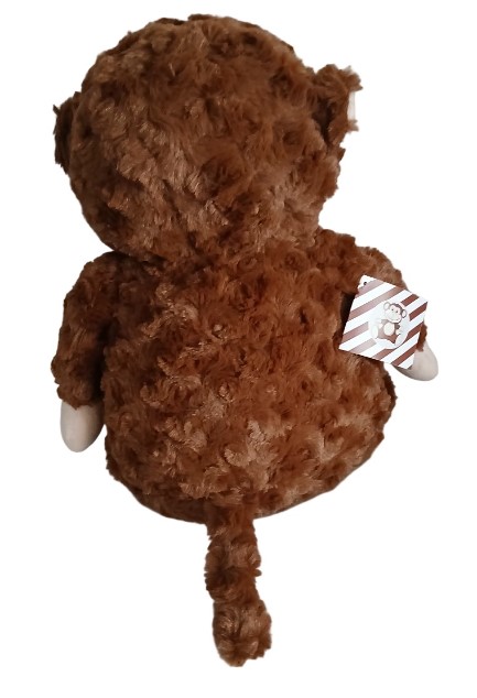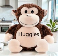 This character is Huggles. He is a loveable fluffy brown monkey with a cheeky smile. He has small ears, black eyes and a long tail. Anyone would be delighted to receive such an adorable toy.