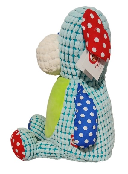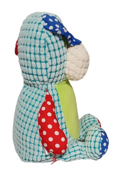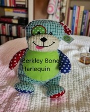This character is Berkley Bone Harlequin an adorable dog anyone would be happy to receive. Made from a patchwork of fabric and textures, he is the most cuddly toy.