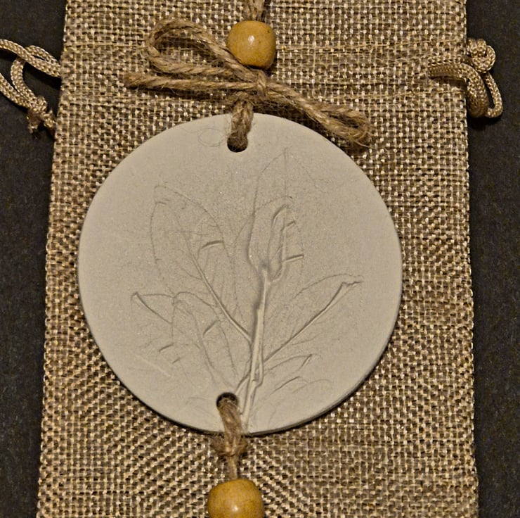 Beautiful handmade hanging air dry clay diffuser in jute gift bag