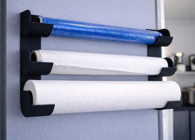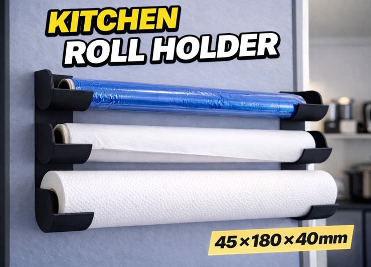 Each holder is handmade by us using high quality 3D printing materials and printed to order, ensuring a strong, durable finish with a modern, minimalist look. The sturdy design is suitable for kitchens, utility rooms, workshops, caravans, or anywhere roll storage is needed.