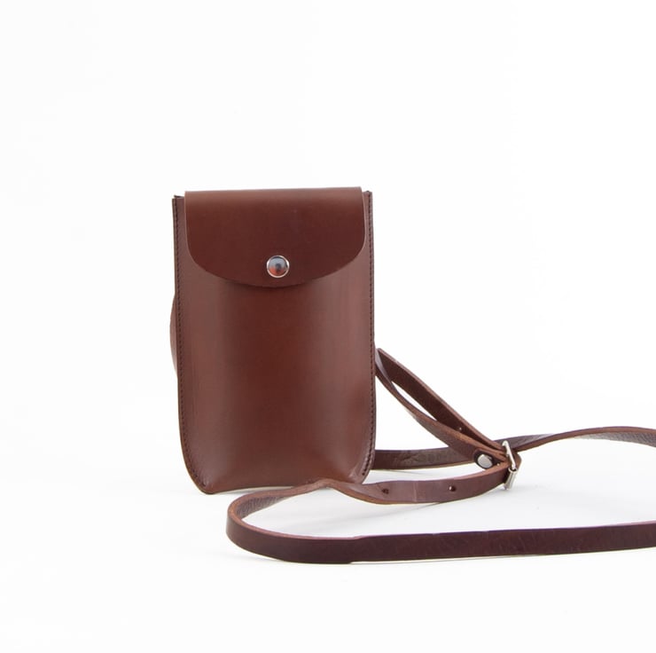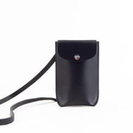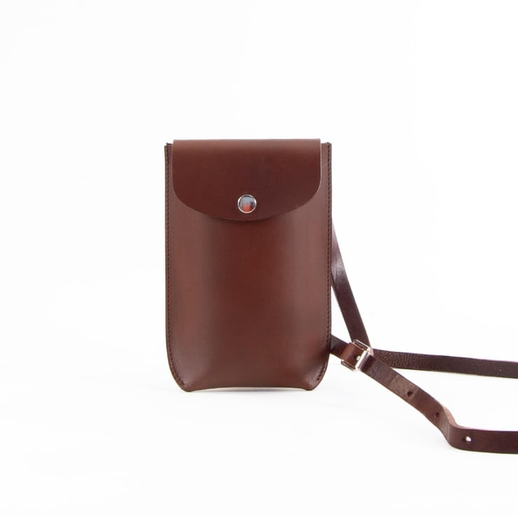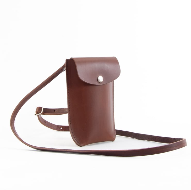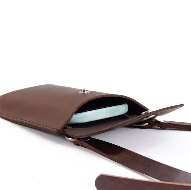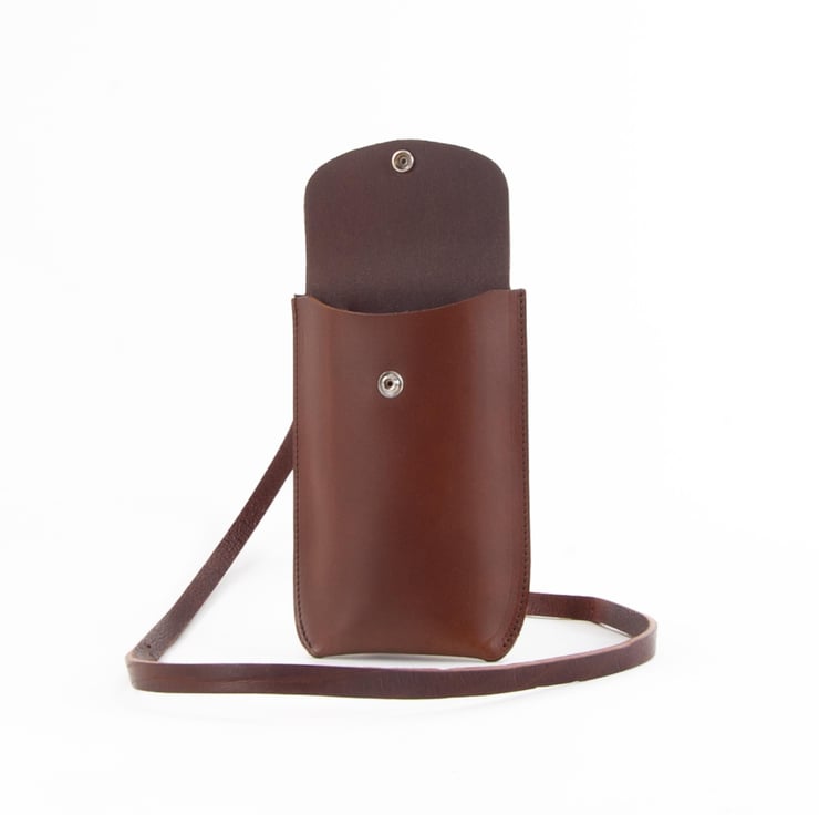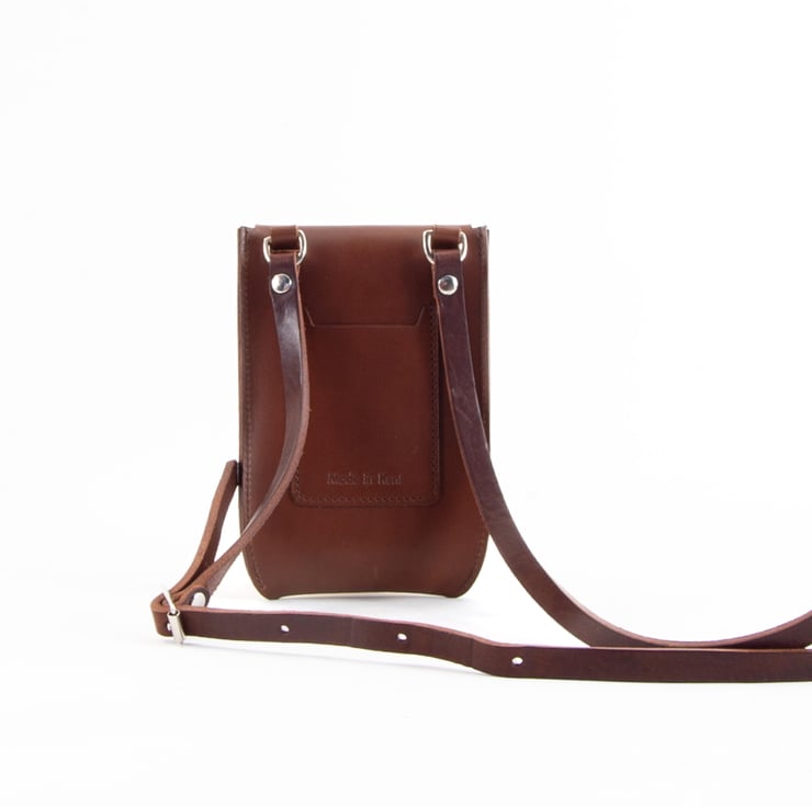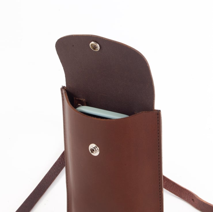 Structured leather phone holder. Handmade in Kent, UK.