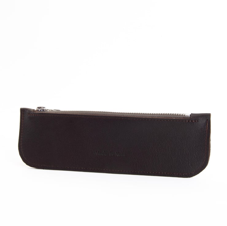 Perfect size for pens and pencils, this small zipped pouch allows you to carry the essentials without extra weight. Handmade in my Kent workshop, this pencil case is crafted from soft cow hide, and measures about 19cm long by about 6cm high. It easily fits about 8 normal sized pens or pencils, or use it for other small items to help keep you organised on the move.