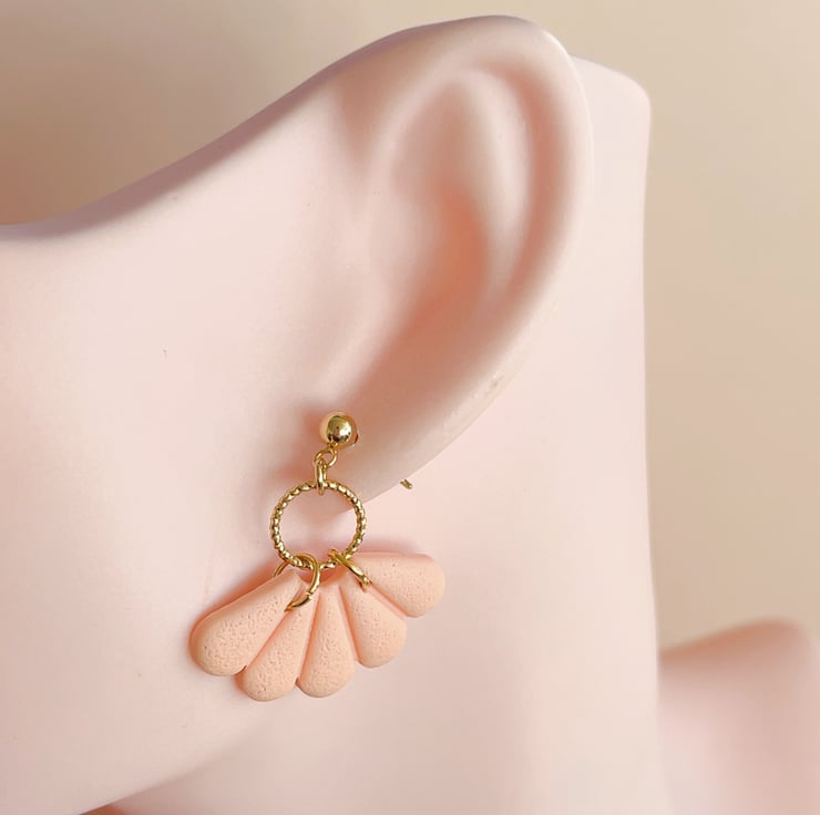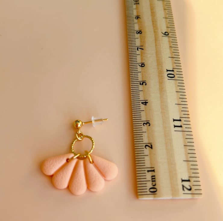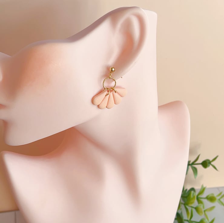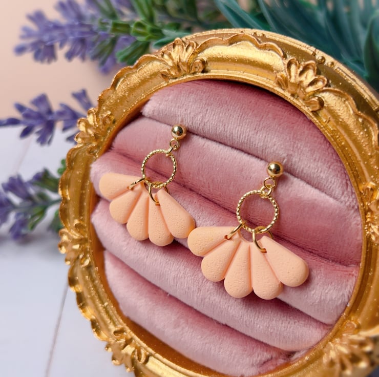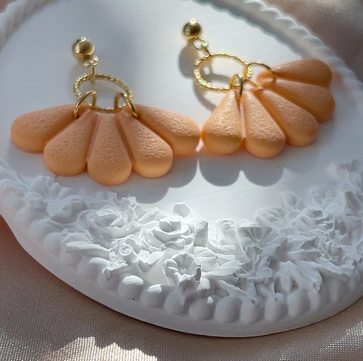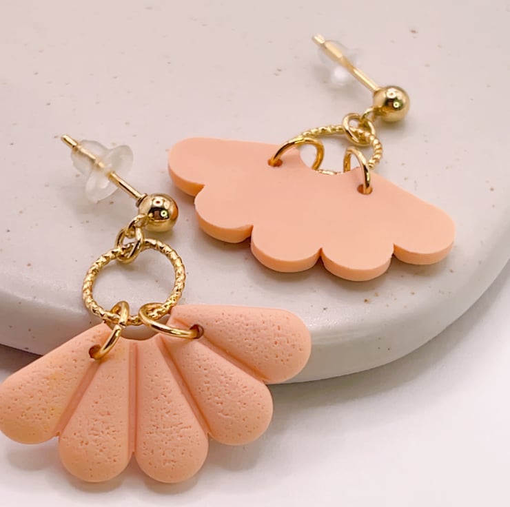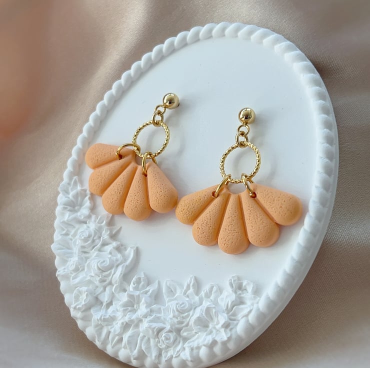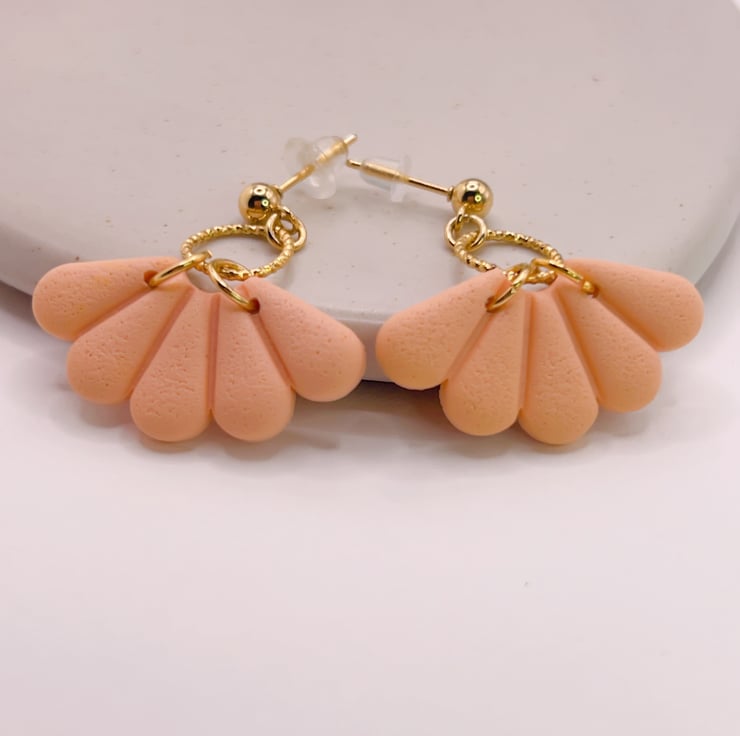 -1 pair of handmade polymer clay drop jewellery in a peach “fan” shape