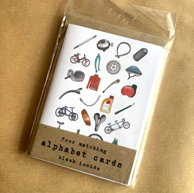 Perfectly Imperfect Cycling Alphabet Greetings Card - pack of four