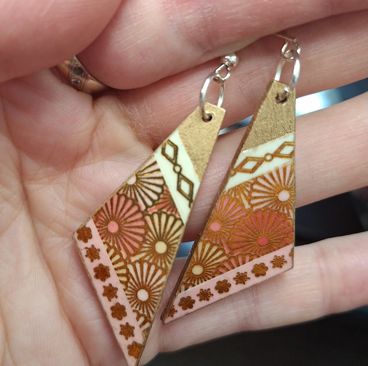 Floral Boho Teardrop Earrings – Golden & Pink Washi Tape Dangles