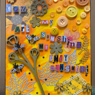 This piece is mounted in an open fronted white frame so that the textures are seen and is ready to hang on the wall or be placed on a table top.