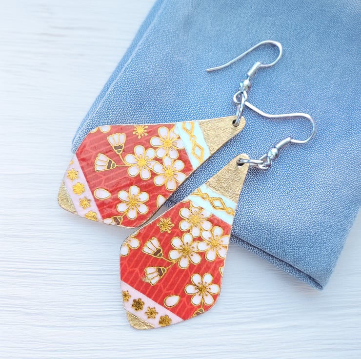 Romantic, funky, and full of handmade charm — these floral teardrop earrings feature vibrant red and pink Washi tape with golden accents, decoupaged and gloss-varnished by hand. Each side showcases a different design, making them delightfully unique. Lightweight and easy to wear, they’re perfect for springtime strolls, romantic getaways, or adding a splash of colour to your everyday. A joyful gift for someone special — or a treat just for you.