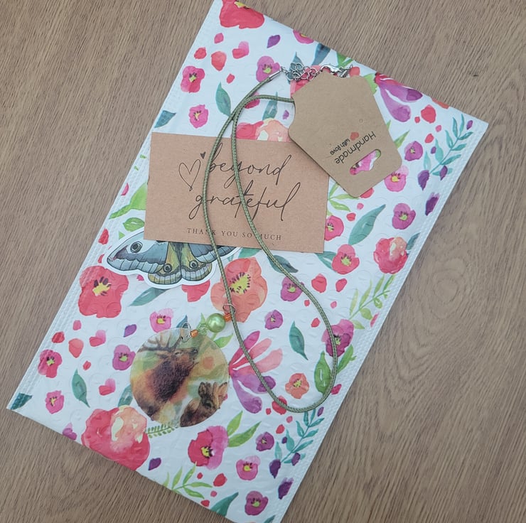 Royal Mail 2nd Class. Packaging may slightly change depending on how much I have sold (Tissue paper or stickers) The stickers are not my design just a freebie.