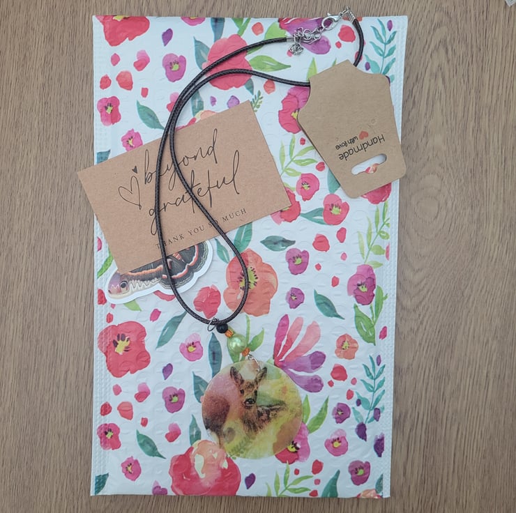 Royal Mail 2nd Class. Packaging may slightly change depending on how much I have sold (Tissue paper or stickers) The stickers are not my design just a freebie.