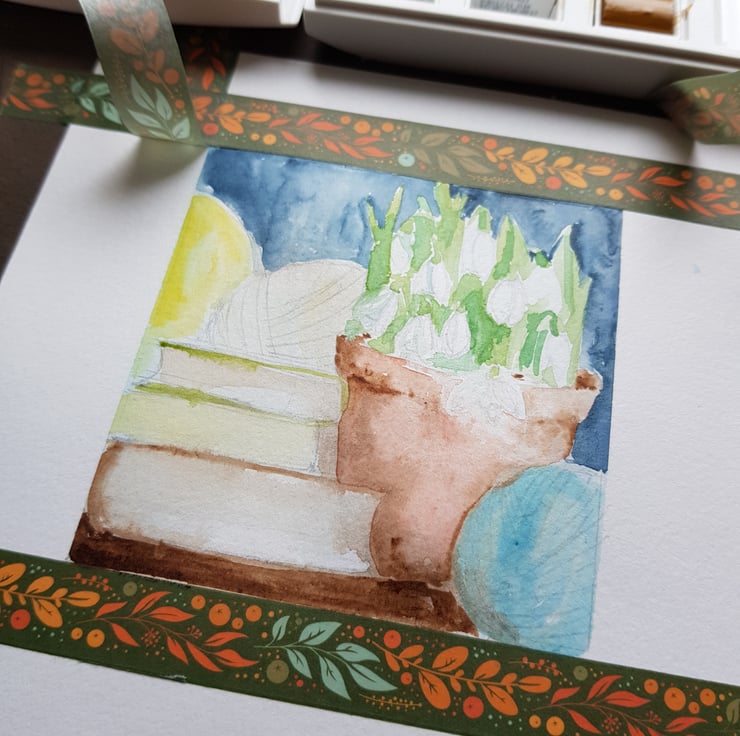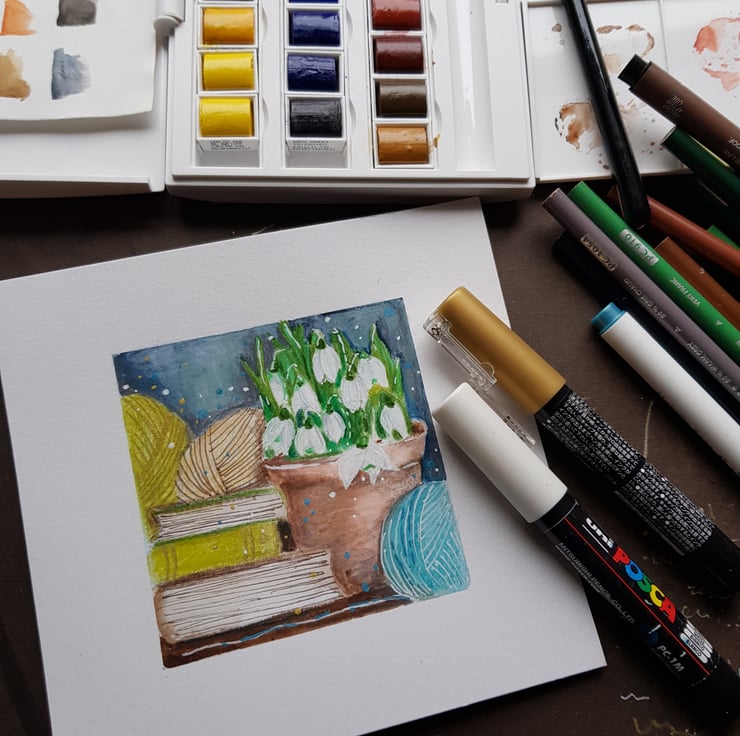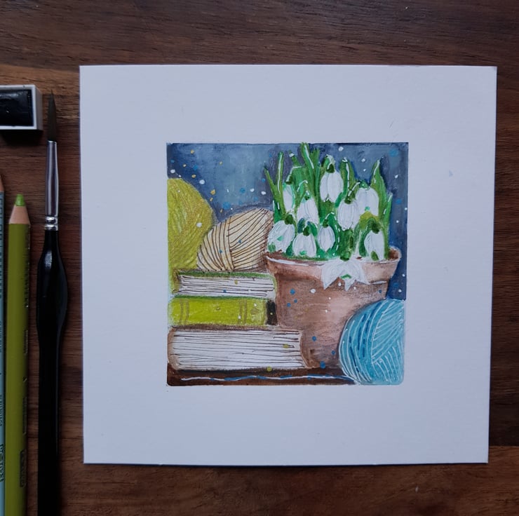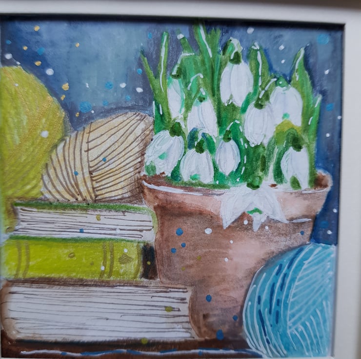 Small original artwork inspired by the gentle, but resilient beauty of snowdrops. I used watercolours, coloured pencils and acrylics to create this artwork.