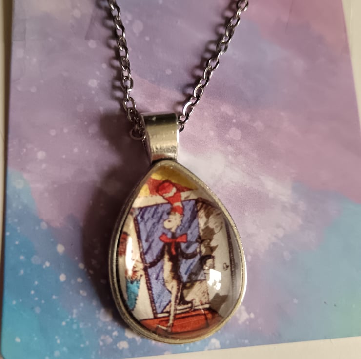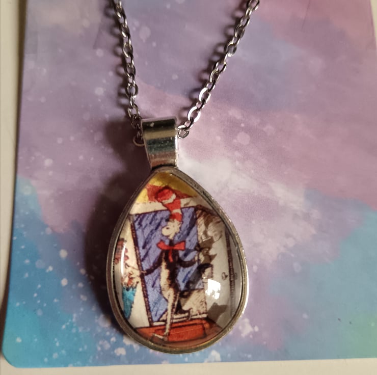 Quirky necklace featuring photography of street art from Bristol of the 'Cat In The Hat'.