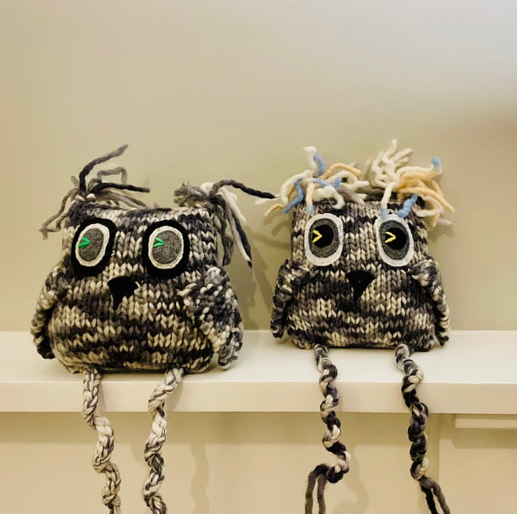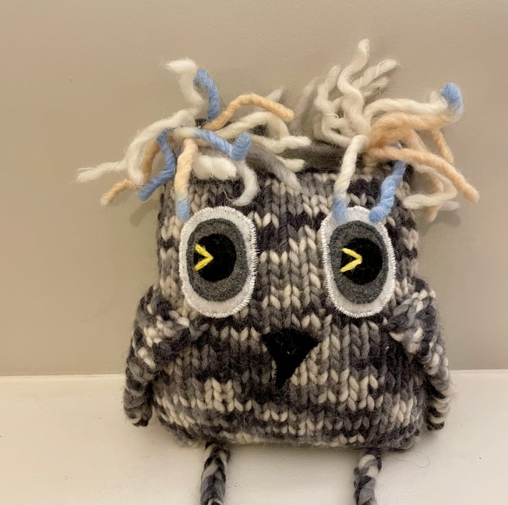 Our lovely grey owls are made from the thick mix wool, filled with the safe toy stuffing. The eyes are made from black and grey felt.