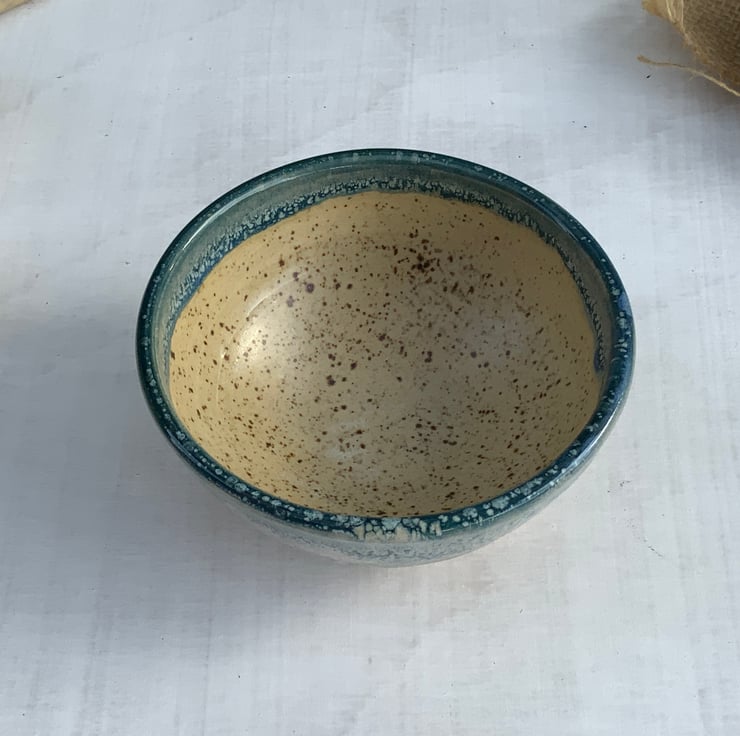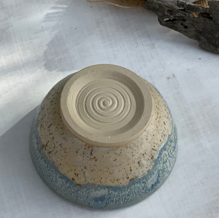 This beautiful little bowl is perfect for rings, trinkets or as a display piece. It has been wheel-thrown using stoneware clay and hand glazed with a combination of Winter Wood and Shipwreck glazes. The flow of the glazes and the hand turned foot make this an elegant item to enhance your home.