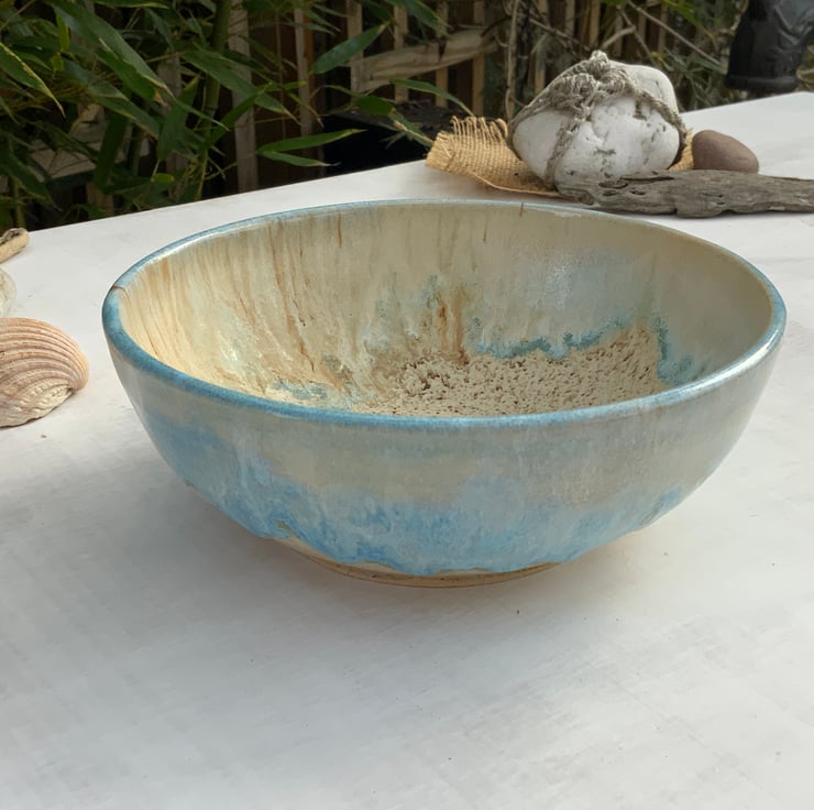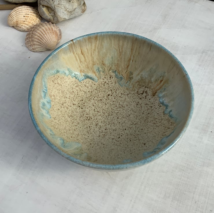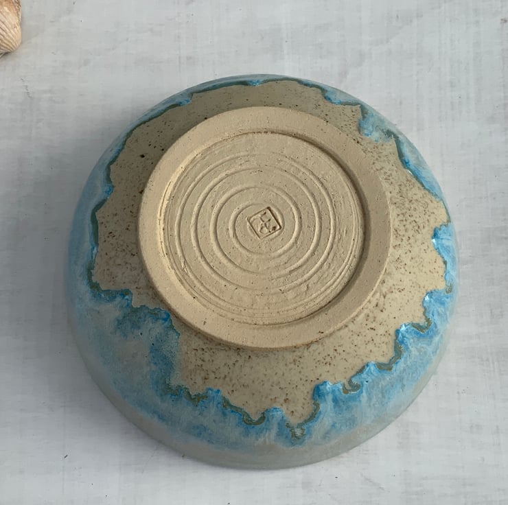 This wheel-thrown dish is crafted with care and finished in Winter Wood and Norse Blue glazes. During firing, the two glazes interact beautifully, creating these distinct colours — soft earth tones, mid blue and light blue — blending in a natural, organic flow. The turned and trimmed foot adds refinement and balance, showcasing the maker’s skill. Each piece is unique, bringing the beauty of handcrafted pottery into your home.