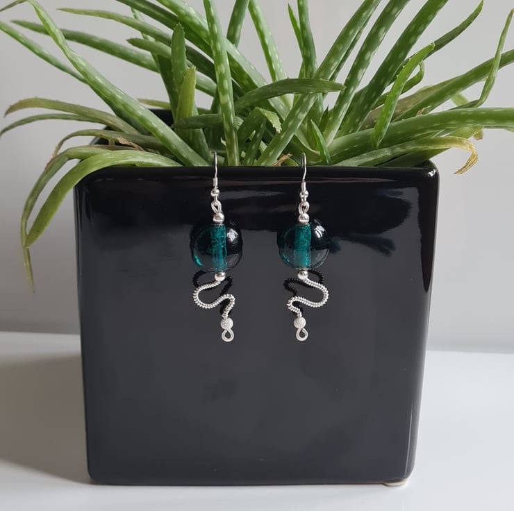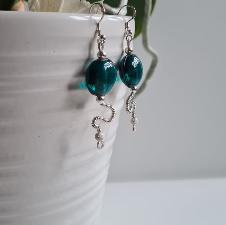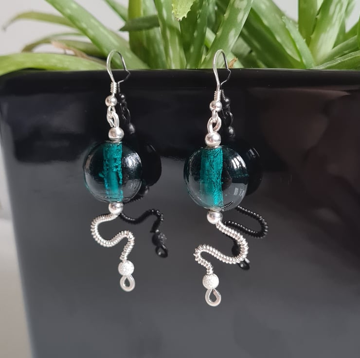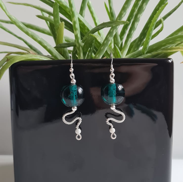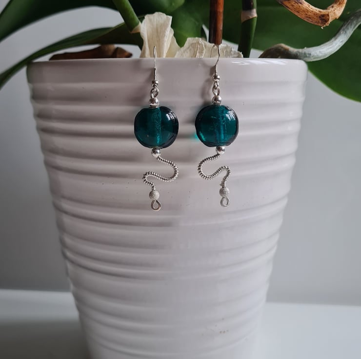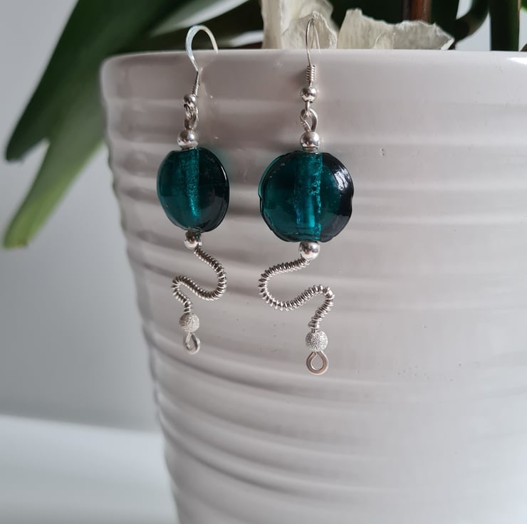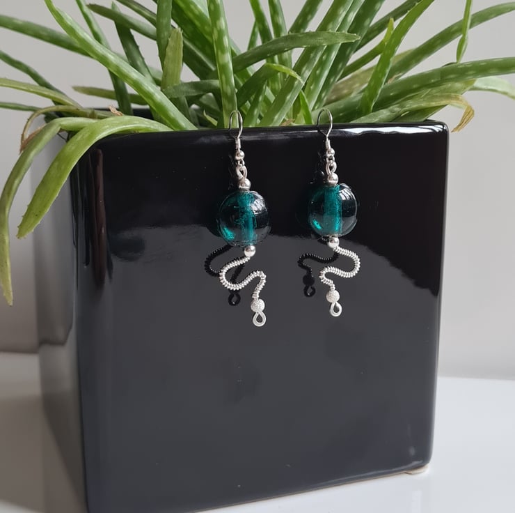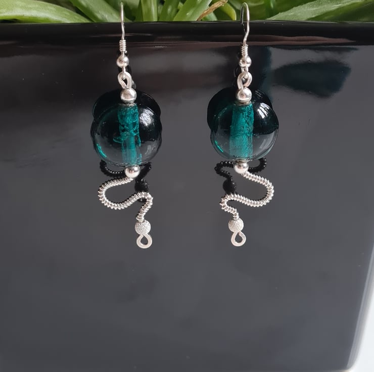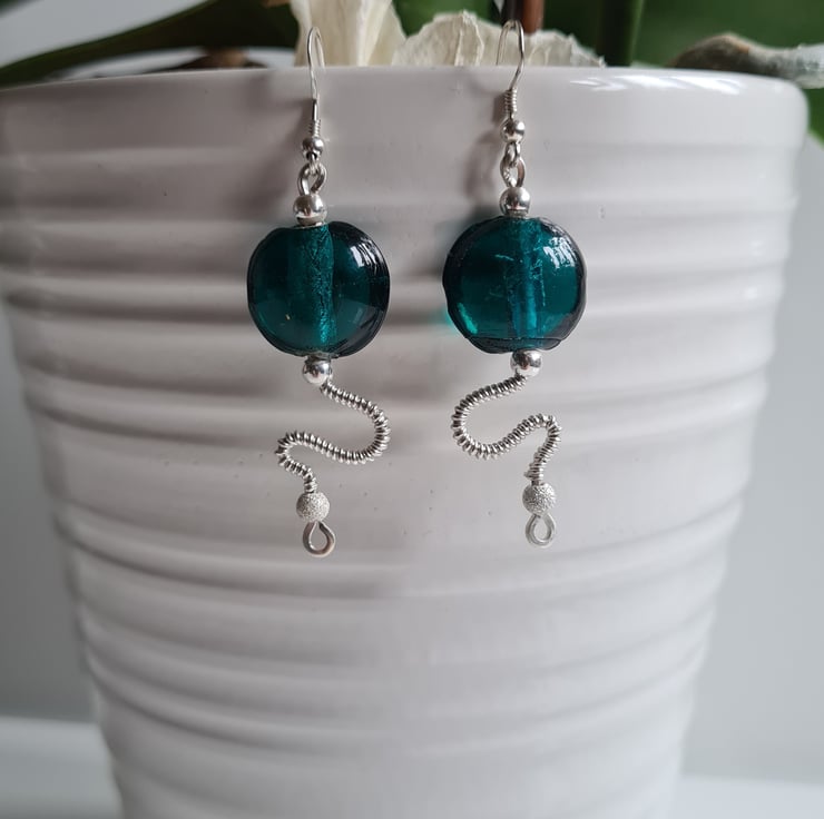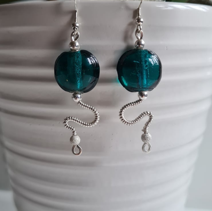 I have handcrafted these stunning earrings using 925 Silver and these gorgeous teal green glass beads. The other beads in the design are sterling silver with sterling silver glitter beads at the bottom. These are a one of a kind design and they really do make a statement