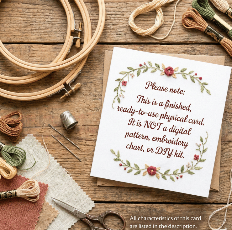 Please note: This is a finished, ready-to-use physical card. It is NOT a digital pattern, embroidery chart, or DIY kit.