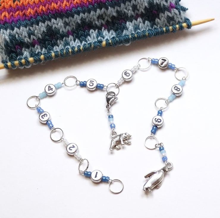 Keep track of your knitting with this charming handmade Penguin & Polar Bear Row Counter Chain, designed to make counting rows easy and stress-free.