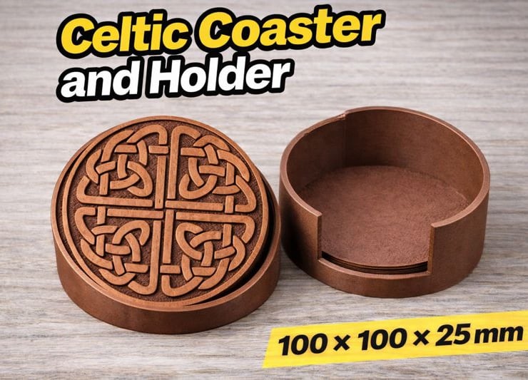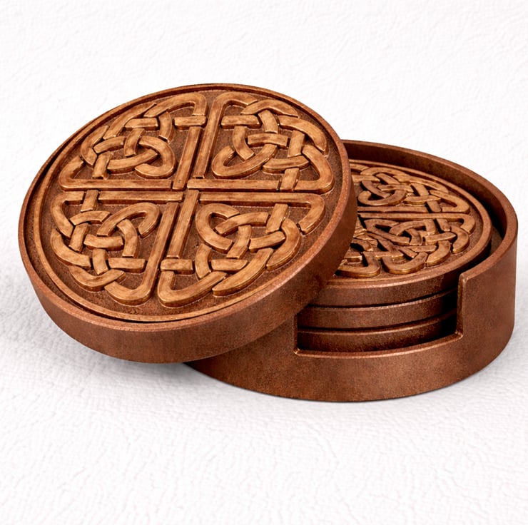 Add a touch of timeless Celtic design to your home or workspace with this Celtic Coaster and Holder set, carefully 3D printed and finished to a high standard. Featuring a detailed Celtic knot design, this set is both practical and decorative, making it ideal for everyday use or as a thoughtful gift.