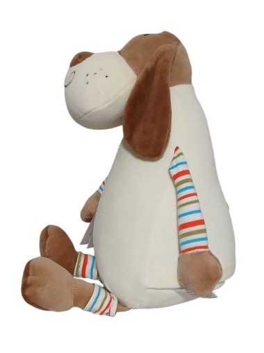 This is Berkley Bone Pastel. Based on a dog, he is the brother of Berkley Bone and has striped arms and legs. He has one eye, a cute facial expression and big floppy brown ears.