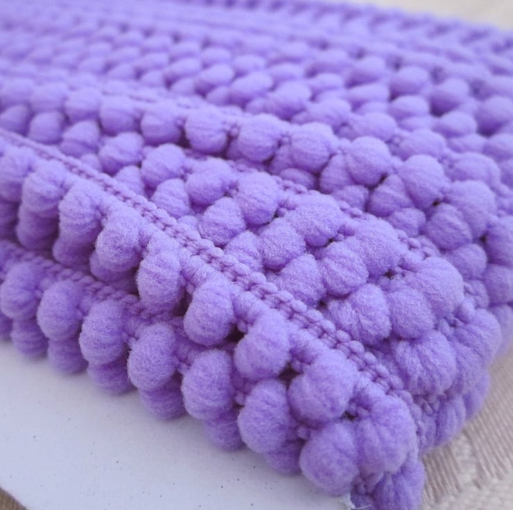 Orchid purple mini pompom trim. Main braid is 4.5mm wide, pompoms are approx 5mm across