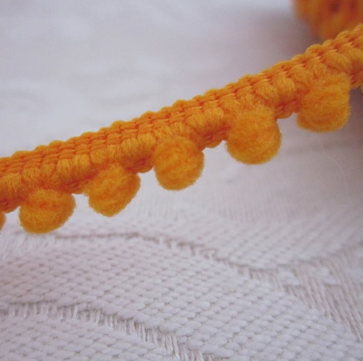 Tangerine orange mini pompom trim. Main braid is 4.5mm wide, pompoms are approx 5mm across