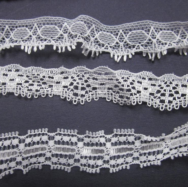 3m each of 3 different patterns of ivory lace 1.2 cms wide