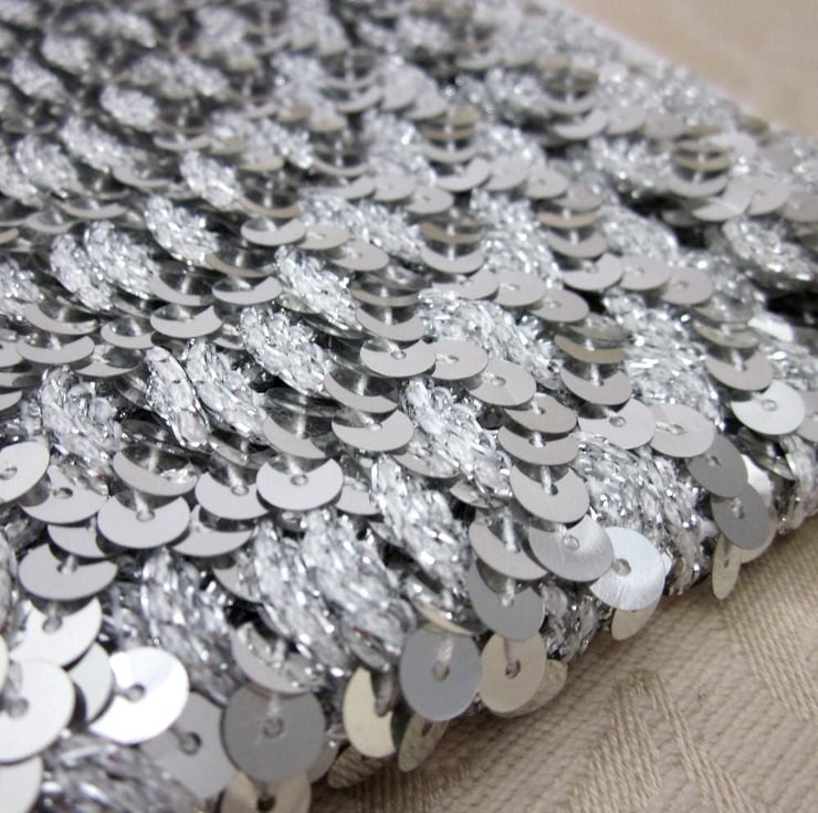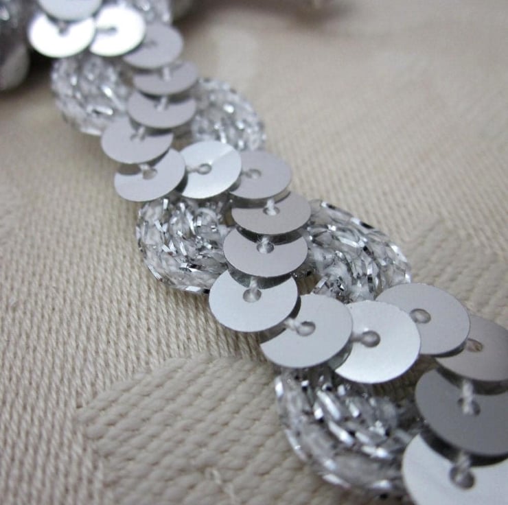 Silver lurex chunky ricrac attached to a silver sequin band.