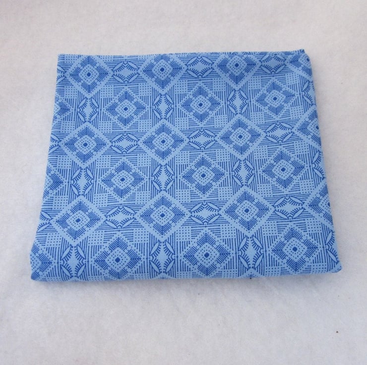 Beautiful cotton fat quarter in a geometric pattern of light and medium blue.
