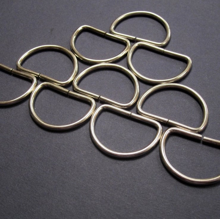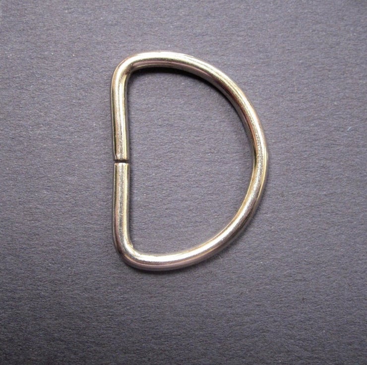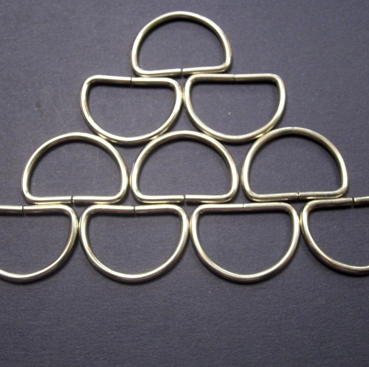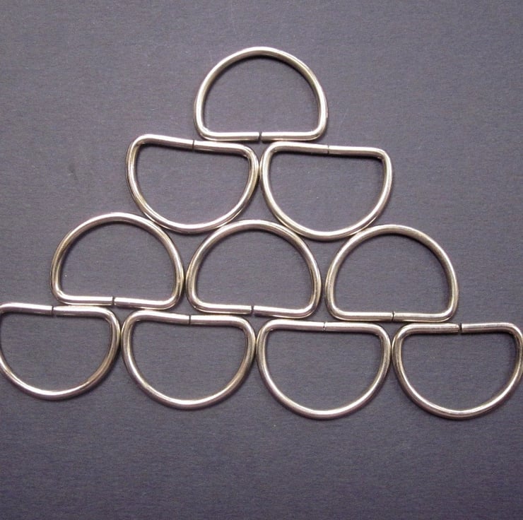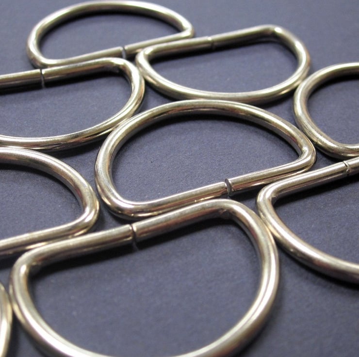 Medium silver metal D rings for handbag strap fastenings.