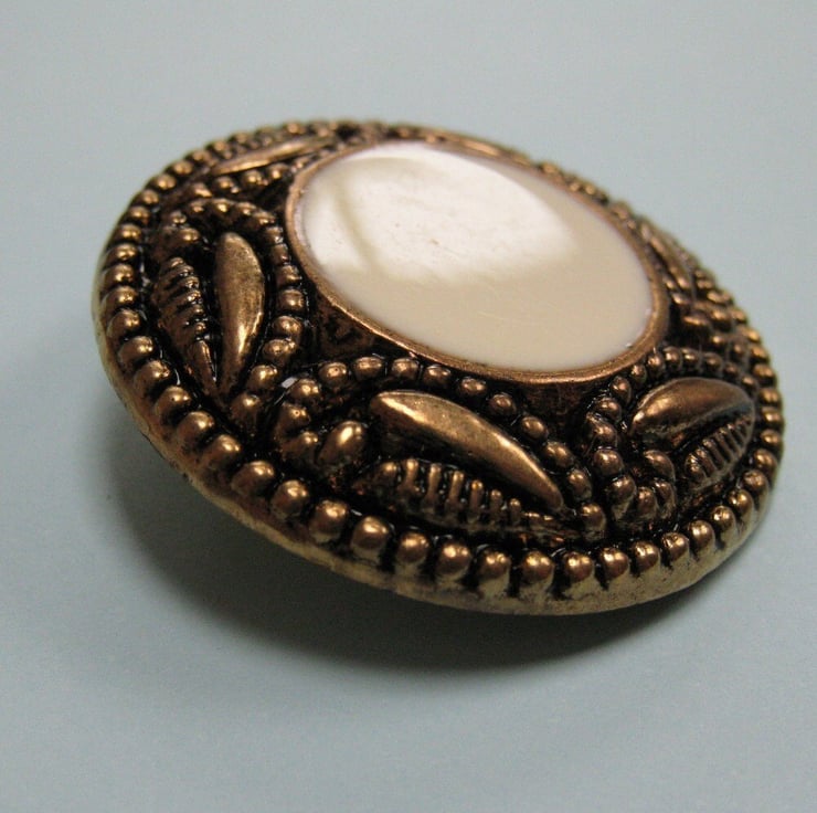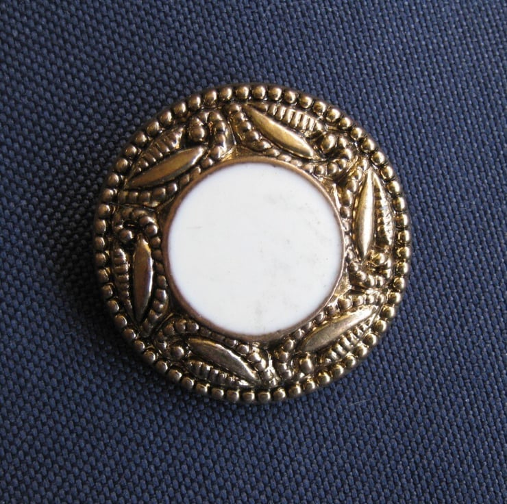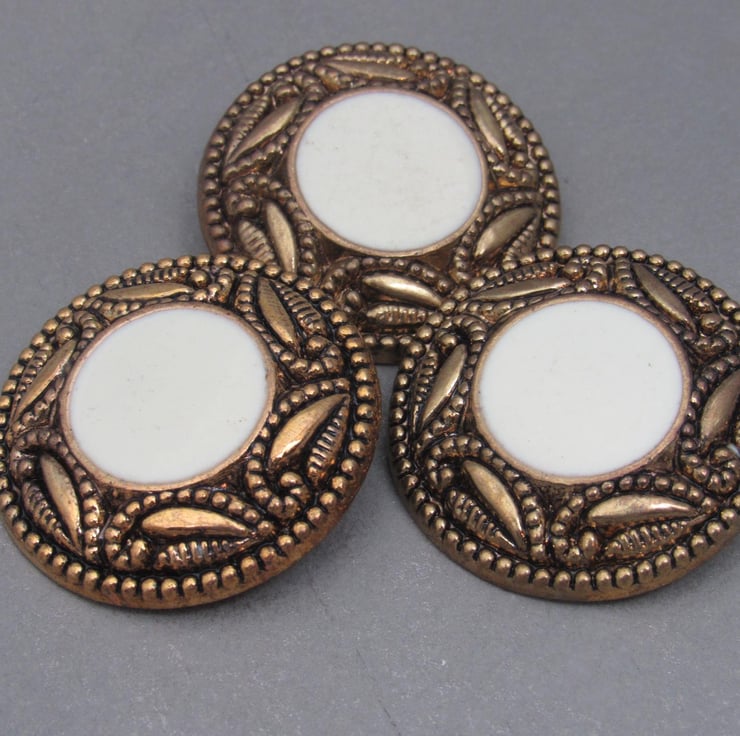 3 large plastic buttons, gold moulded rim and a central ivory cream plastic flat faced boss.