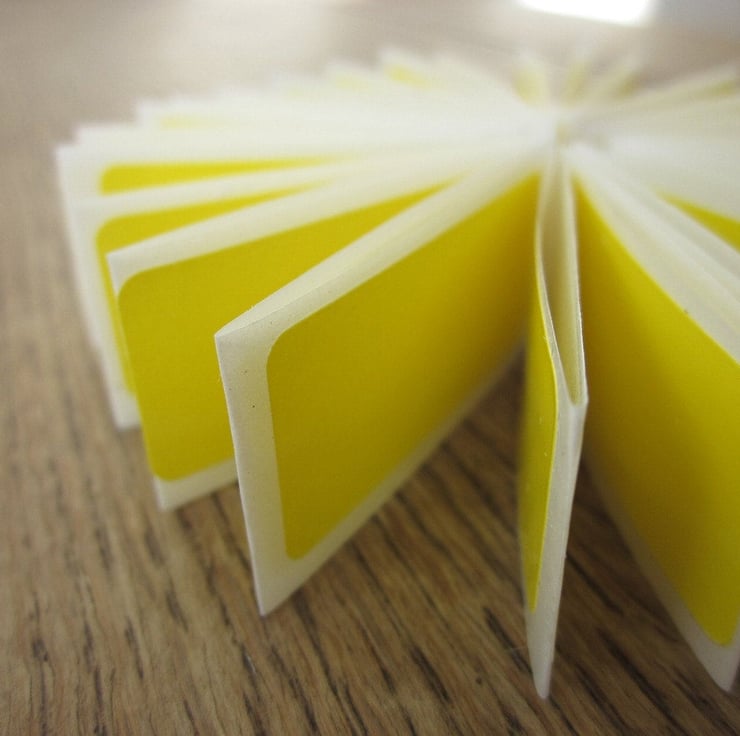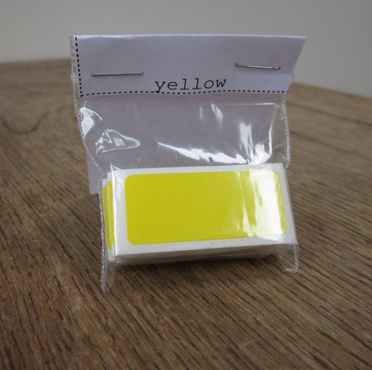 50 small bright yellow stickers, perfect for scrap-booking or for packaging.