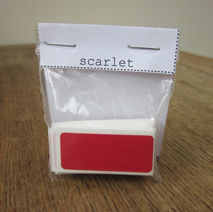 50 small bright scarlet red stickers, perfect for scrap-booking or for packaging.
