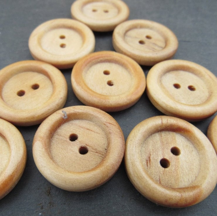 10 medium sized lightweight composite wooden buttons with a raised 'english' rim.