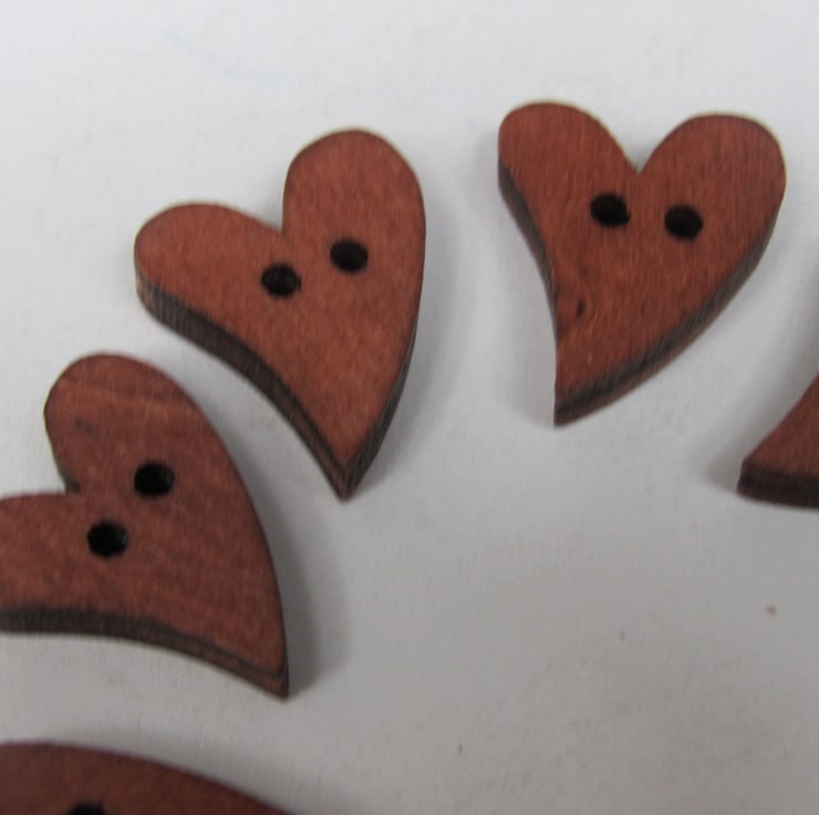 10 Medium 20mm Wooden Folk Heart Buttons