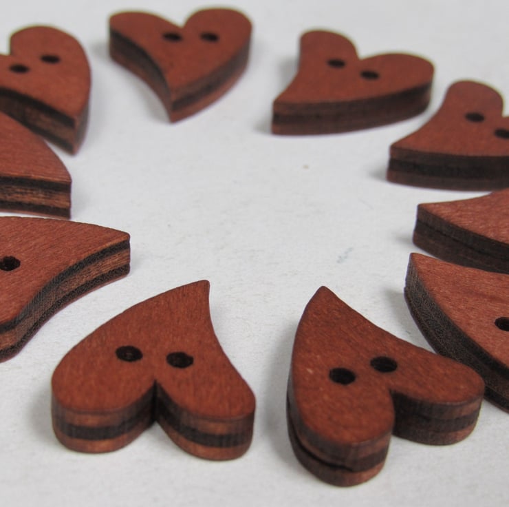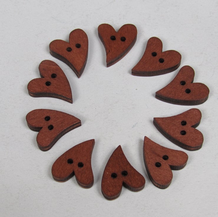 10 pretty dark wooden folk heart shaped buttons.