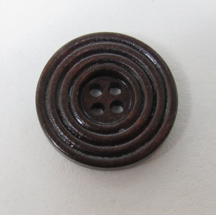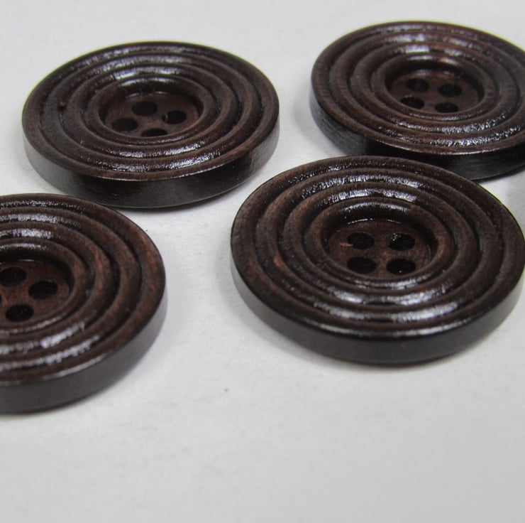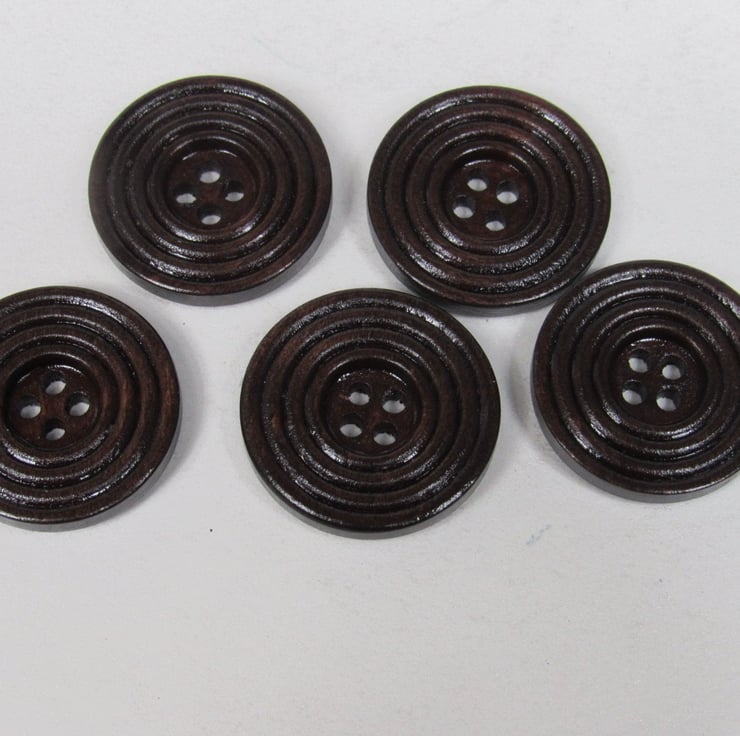 5 beautiful dark varnished wood buttons with a pattern of concentric circles.