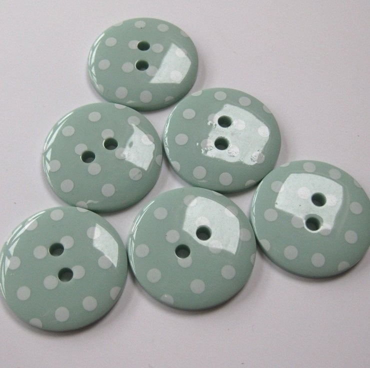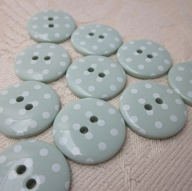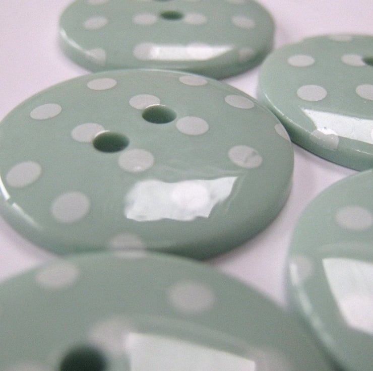 Pale sage green buttons polka dotted with white. Reverse is plain sage.